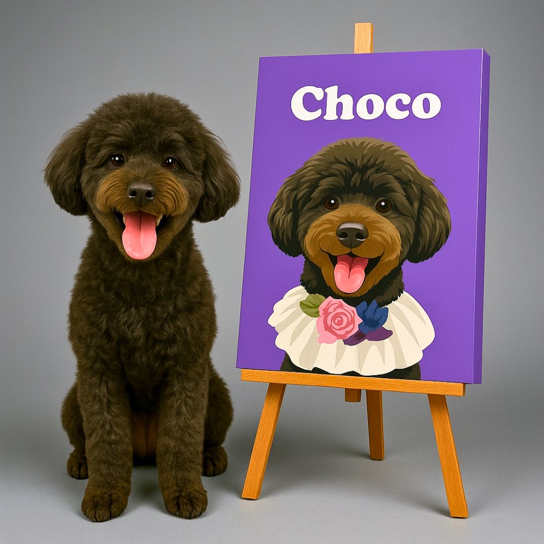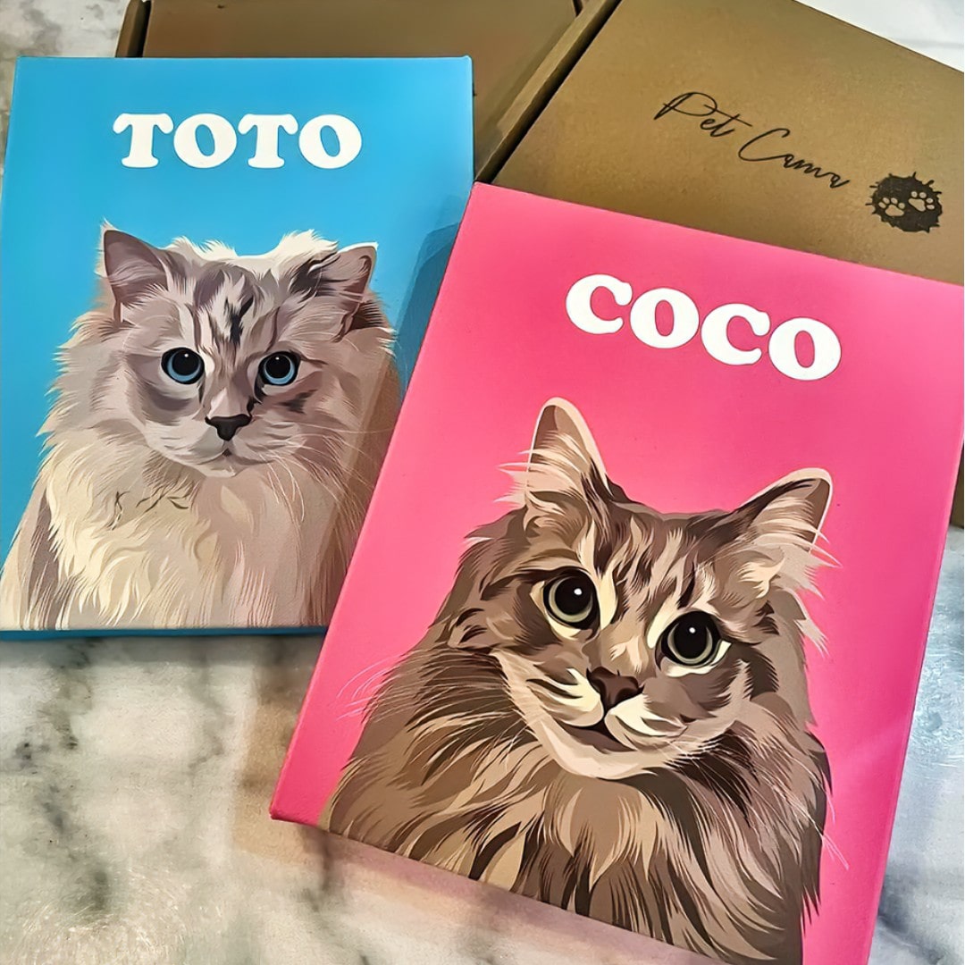 Sサイズ(20×25cm)、Lサイズ(30×45cm)、XLサイズ(40×60cm)から選択可能。厚手キャンバスに美術館レベルの高品質印刷を施し、丈夫な木製フレームに張り込み。大切なペットの姿を長く残し、空間を華やかに彩ります。